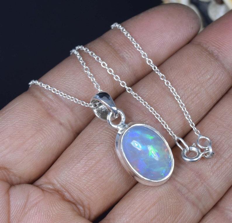 เอธิโอเปียโอปอล 925 เงินสเตอร์ลิงอัญมณีจี้ W/หรือ W/o ตุลาคม Birthstone หินธรรมชาติของขวัญวันเกิด