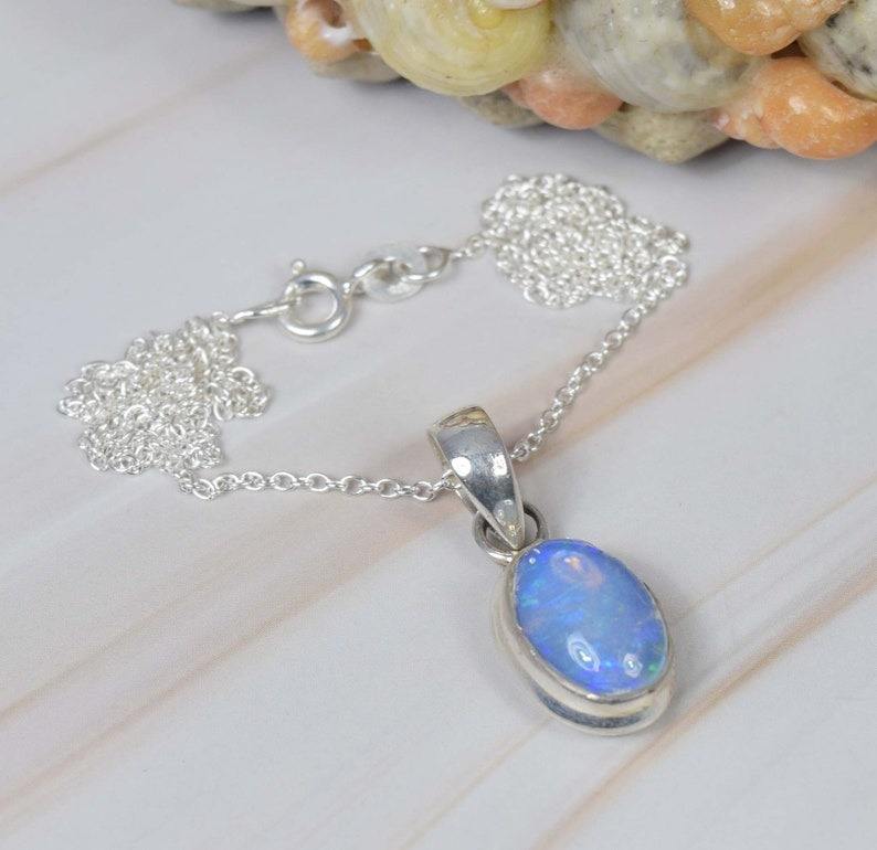เอธิโอเปียโอปอล 925 เงินสเตอร์ลิงอัญมณีจี้เดือนตุลาคม Birthstone รูปไข่หินธรรมชาติของขวัญสําหรับเธอ