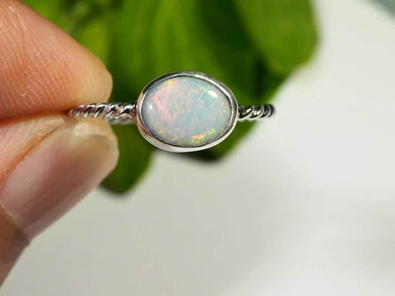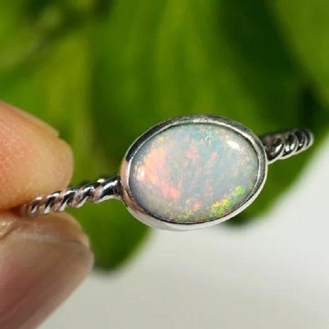 โอปอลเอธิโอเปียน925เงินสเตอร์ลิงวงแหวนแต่งงานวงบิดตั้งเป็นวงรีสีเงินสเตอร์ลิง