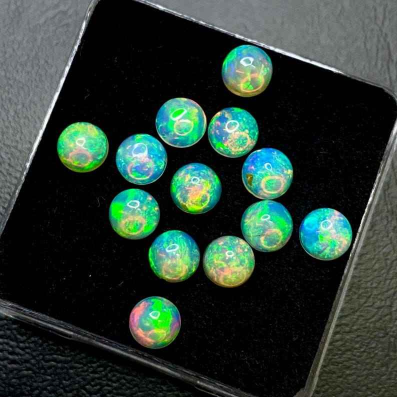 โอปอลเอธิโอเปียทรงกลมแบบคาโบชอง หลายสี ขนาด 4 มม. 5 มม. 6 มม. 7 มม. 8 มม. 9 มม. สำหรับทำเครื่องประดับ