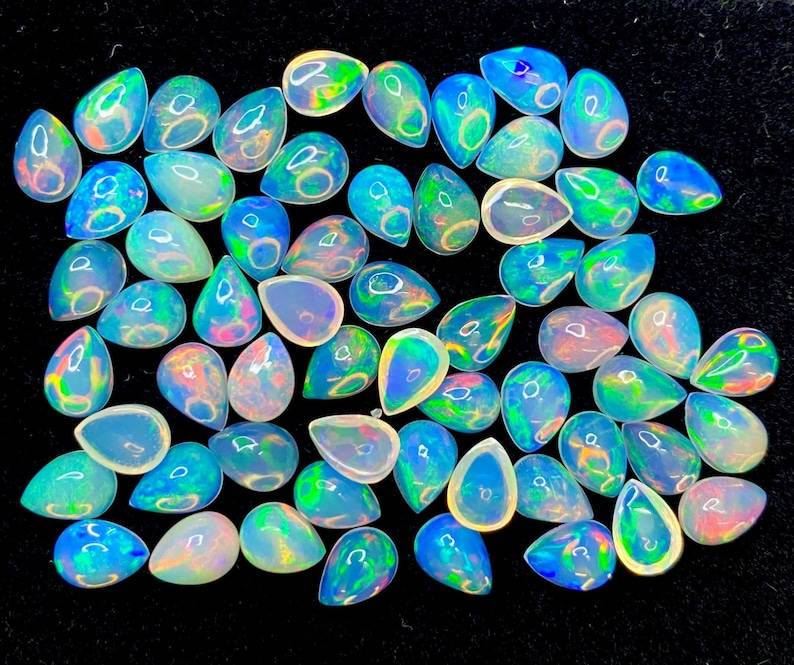 โอปอลเอธิโอเปียทรงลูกแพร์สีขาว หลายสีประกายไฟ ขนาด 6x4 มม. ถึง 8x10 มม. สำหรับทำเครื่องประดับ
