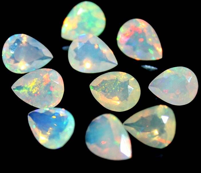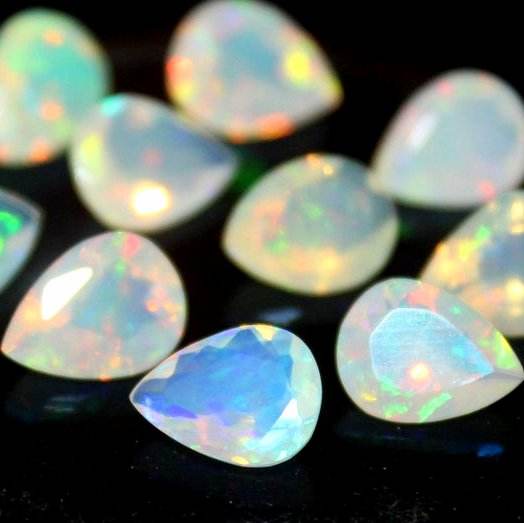 ลูกแพร์โอปอลเหลี่ยมเพชรพลอยโอปอลเอธิโอเปียอัญมณีหลวมหลากสีตามธรรมชาติ