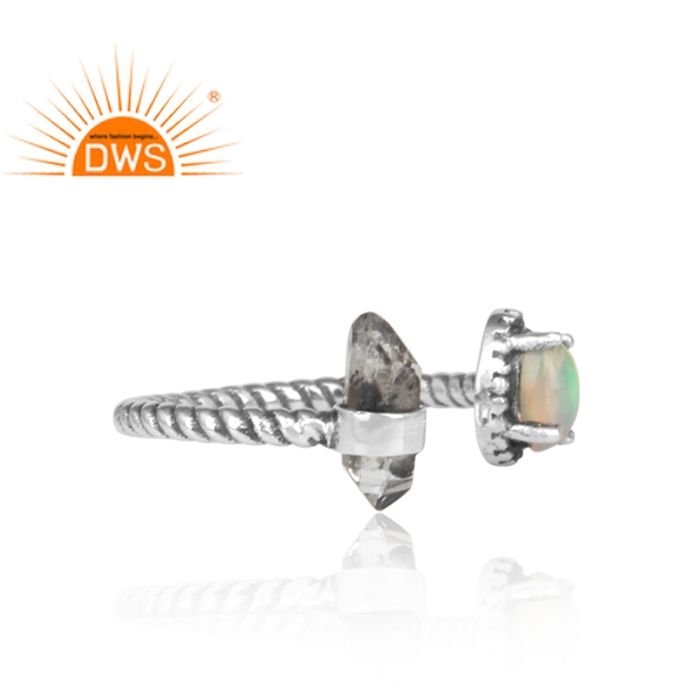 แหวนโอปอลเฮอร์คิเมอร์ของเอธิโอเปียติดเพชรแข็งเงินวงแหวนเปิดอัญมณีคอลเลกชันอันโอชะ