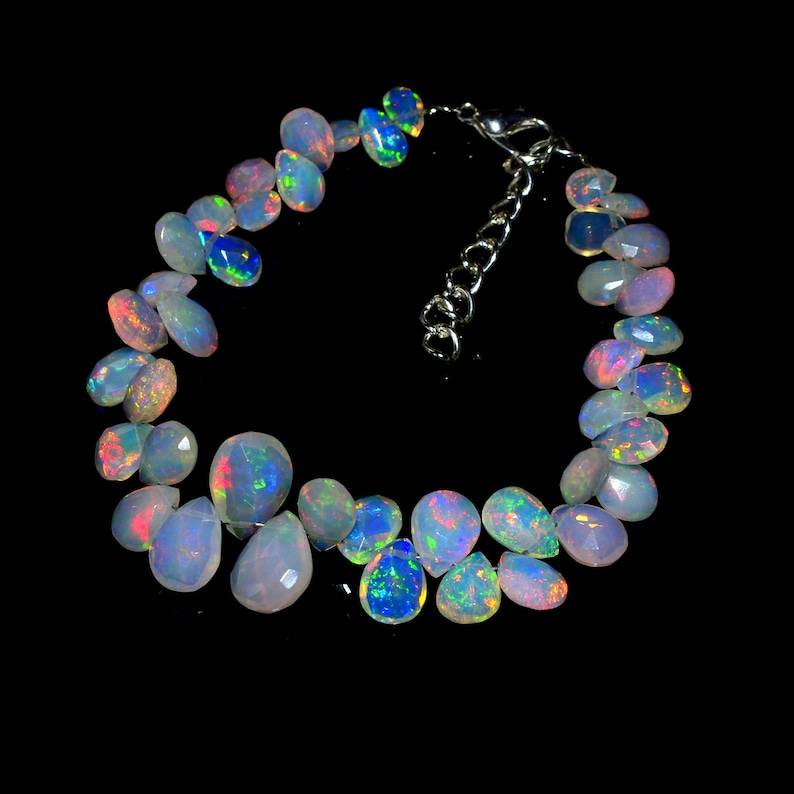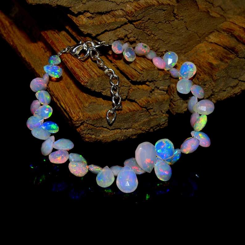 สร้อยคอโอปอลเอธิโอเปียนลูกปัดเหลี่ยมเพชรพลอยปรับความยาวได้สีเงินหลายสีรุ้งประดับลูกปัดอัญมณีแฮนด์เมดผู้หญิง