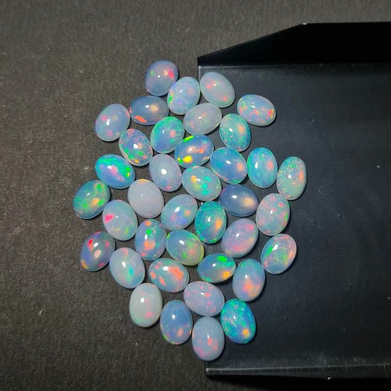 โอปอลเอธิโอเปียคุณภาพดีที่สุด ทรงหัวใจ ขนาด 8x10 มม. สีรุ้งหลากหลาย ผลิตในห้องปฏิบัติการ สำหรับทำเครื่องประดับ ยี่ห้อ a K Gems รุ่น EO-11