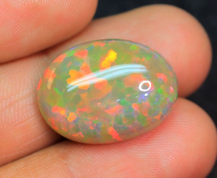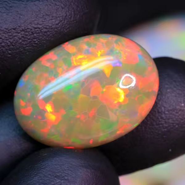 โอปอลเอธิโอเปียทรงรีแบบคาโบชอง - อัญมณีโอปอลเวโลหลากสี - หินธรรมชาติสำหรับทำเครื่องประดับ
