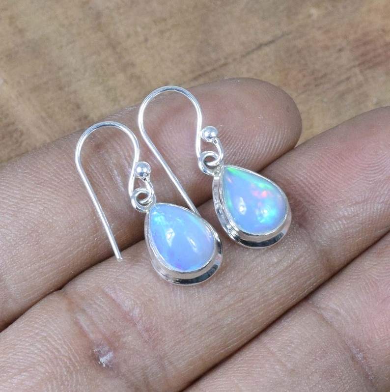 ต่างหูโอปอลเอธิโอเปียทรงลูกแพร์ เงินแท้ 925 งานแฮนด์เมด ประดับขอบด้วยโรเดียม เครื่องประดับอัญมณีหรูหราสำหรับผู้หญิง ของขวัญแฟชั่น