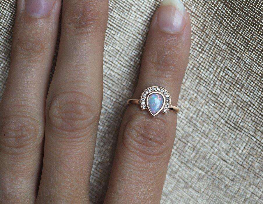 แหวนโอปอลเอธิโอเปียทรงลูกแพร์ ชุบทอง เงินแท้ 925 ฝังแบบ Bezel ดีไซน์วินเทจ แฟชั่นสำหรับงานแต่งงานและงานปาร์ตี้ของผู้หญิง