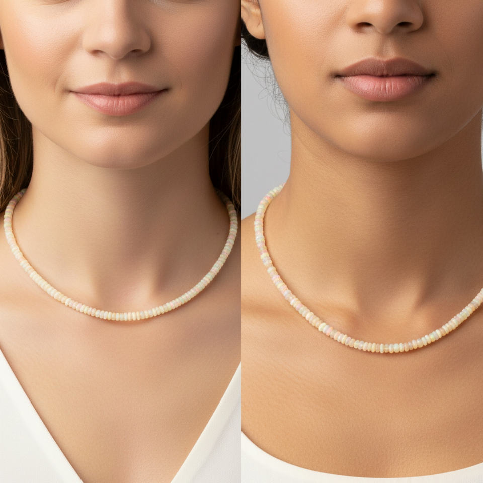 ชื่อสินค้า:สร้อยคอลูกปัดแฮนด์เมดปรับได้ชุบเงินโอปอลเอธิโอเปีย