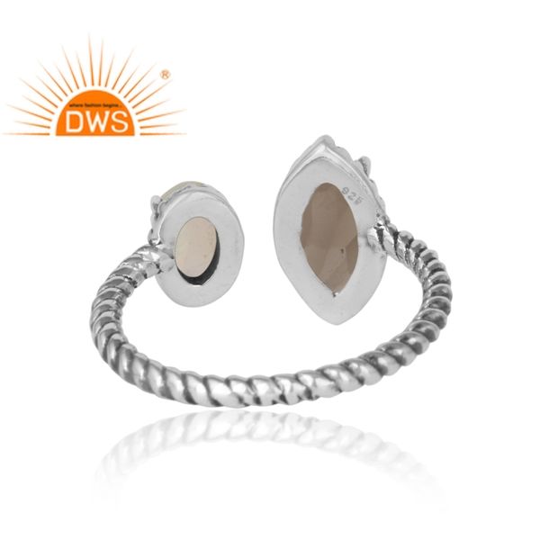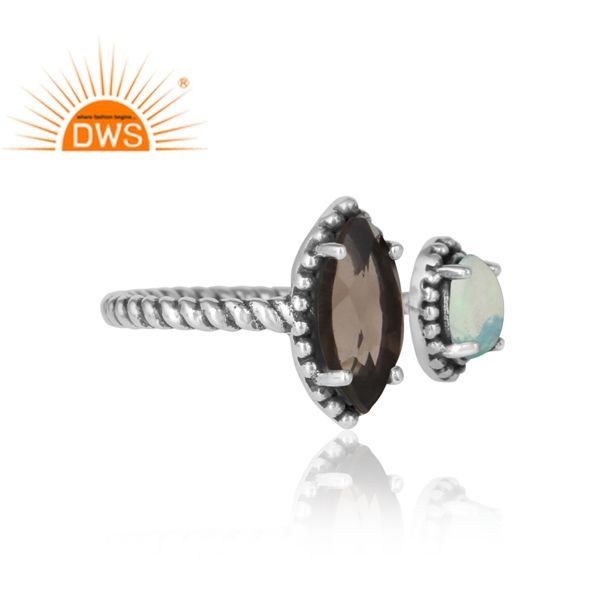 แหวนพลอยโอปอลเอธิโอเปียควอตซ์สโมคกี้ ประดับบนตัวเรือนเงินแท้ชุบออกซิไดซ์ ปรับขนาดได้ ผู้จำหน่ายเครื่องประดับ