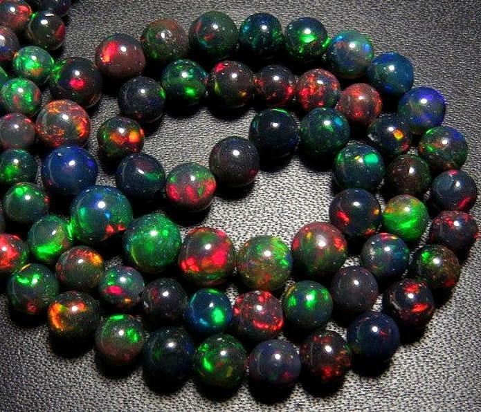 โอปอลสีดำสไตล์เอธิโอเปียนเปอร์โอปอลเม็ดกลมหลวมอัญมณีหลายเม็ดทำเครื่องประดับขายส่งราคาคุณภาพดีตามธรรมชาติ