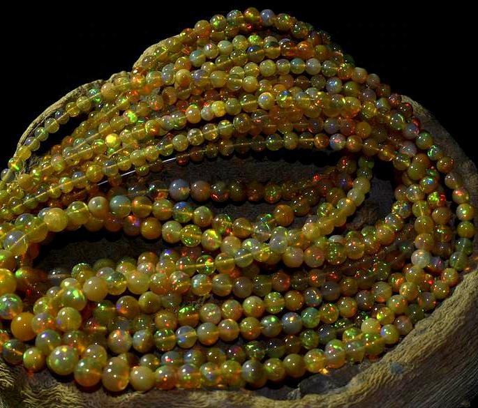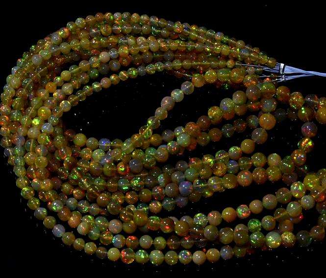 ลูกปัดโอปอลโอปอลแบบหลวมของเอธิโอเปียขัดเงาแบบเรียบหลายไฟสำหรับทำเครื่องประดับ