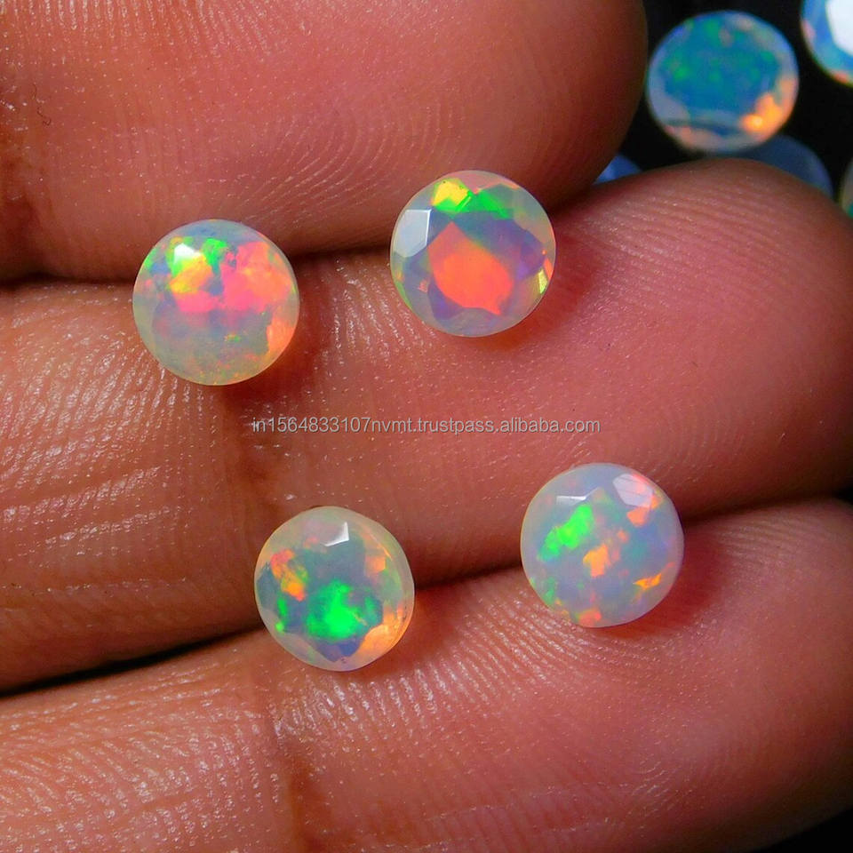 พลอยโอปอล์สีขาวแบบเหลี่ยมเพชรพลอยขนาด5มม. สีสดใสตัดตามธรรมชาติโอปอลแบบหลายเหลี่ยมอัญมณีหลวม
