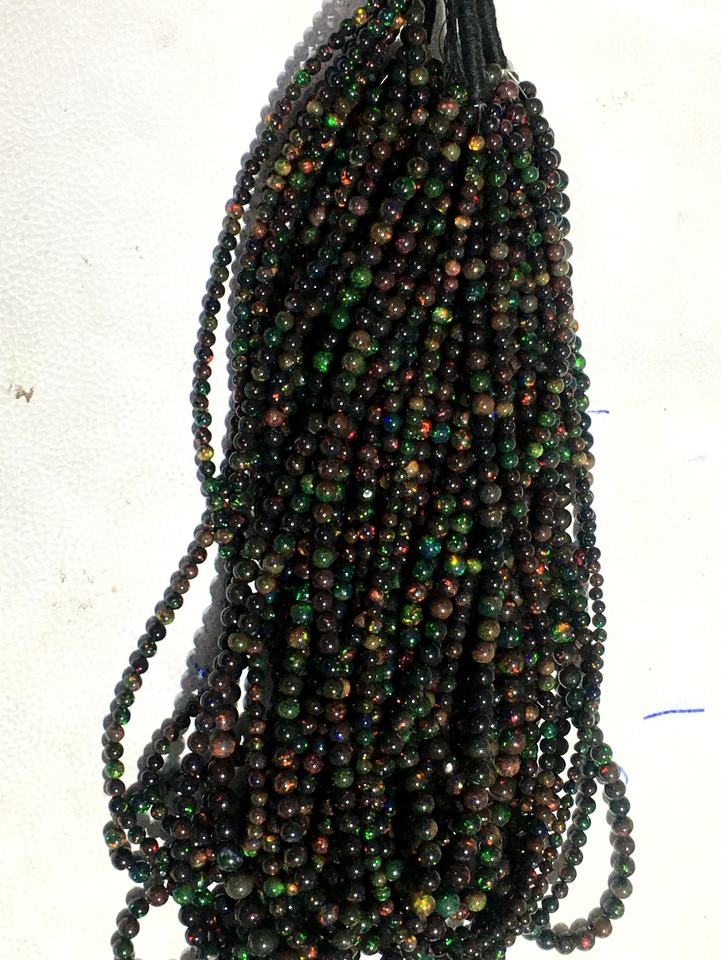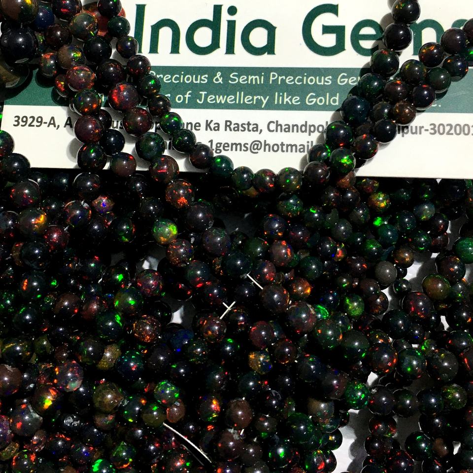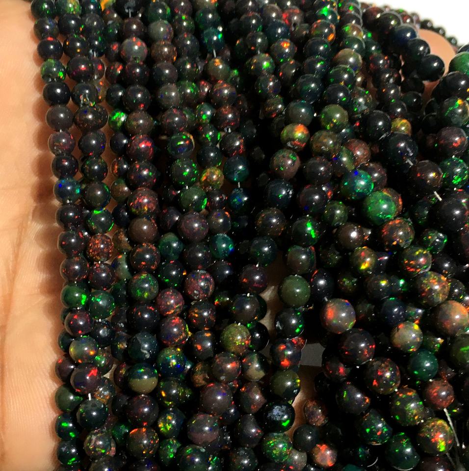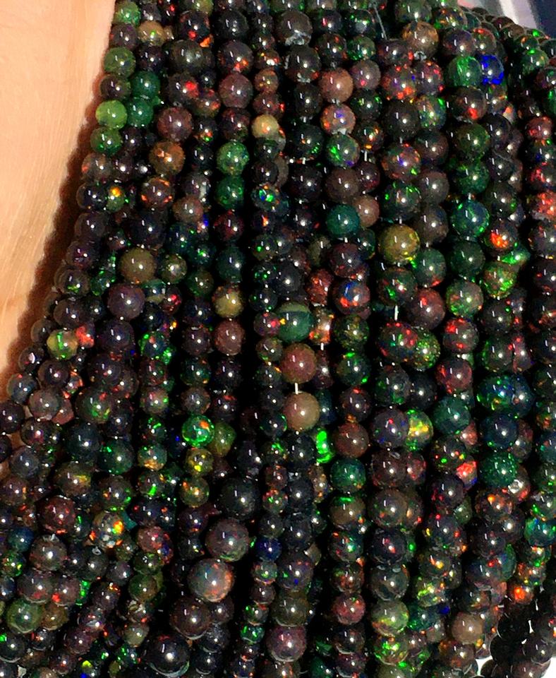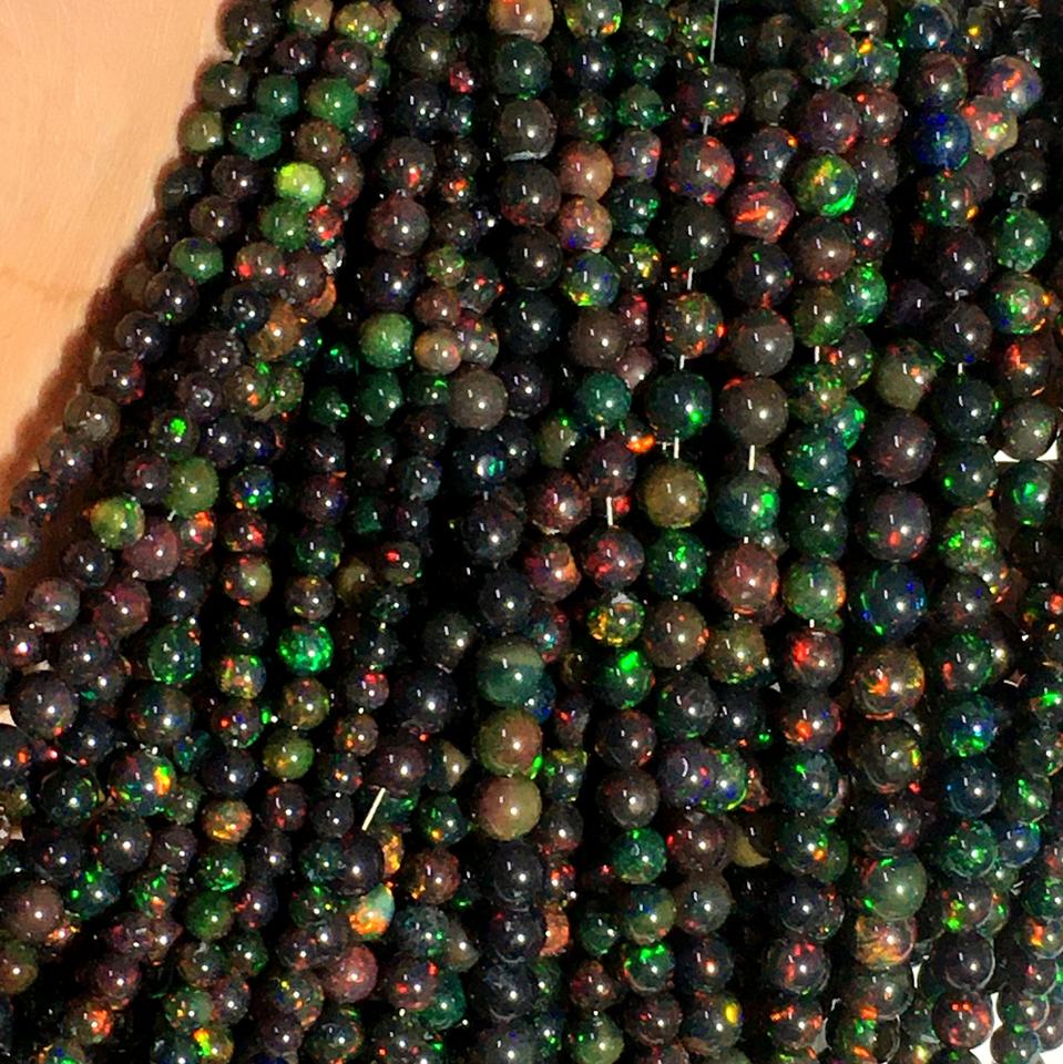 โอปอลหลากสีโอปอลเอธิโอเปียนสีดำเวลโอเพนเรียบทรงกลมหลวมลูกปัดอัญมณีทำเครื่องประดับขายส่ง AAA คุณภาพสูง