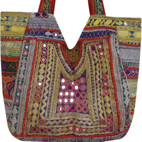 กระเป๋าสะพายไหล่ดีไซน์เนอร์งานฝีมือแบบดั้งเดิมของชาวบันจาราสำหรับผู้หญิง ตกแต่งด้วยงานปักมือ สำหรับแฟชั่นในชีวิตประจำวัน