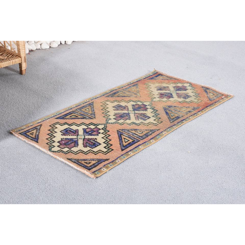 พรมขนสัตว์สีเบจสไตล์พื้นเมืองลายเรขาคณิตลายปะต่อ1.5x2.9ฟุตดีไซน์ปริศนาสี่เหลี่ยมผืนผ้าสำหรับห้องนั่งเล่นห้องโถงทอเทคนิคน้ำยาง