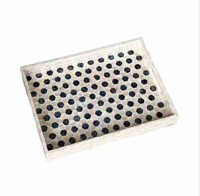 ถาดเสิร์ฟลายกระดูกฝังประดับลายดอกไม้สลักอย่างประณีต ถาดไม้ฝังกระดูกดีไซน์หรูหราสำหรับตกแต่งบาร์และโต๊ะ