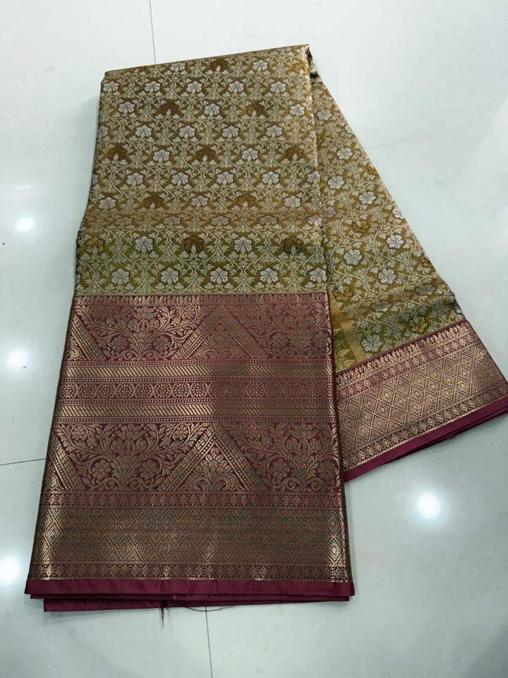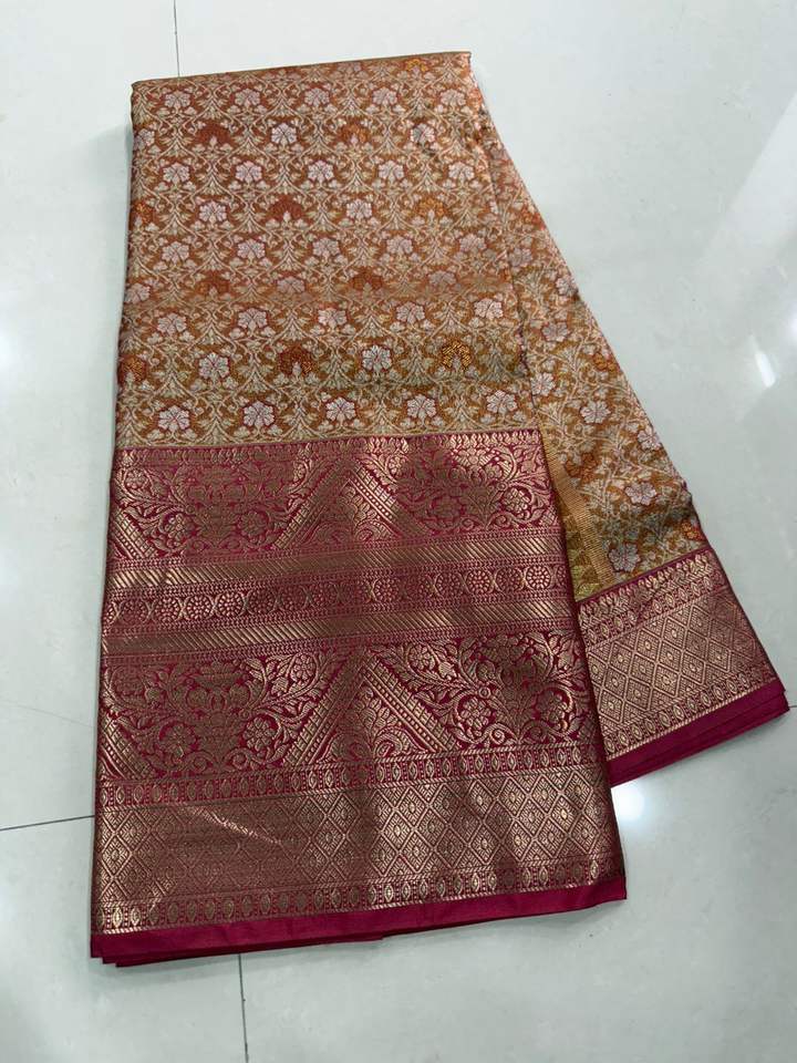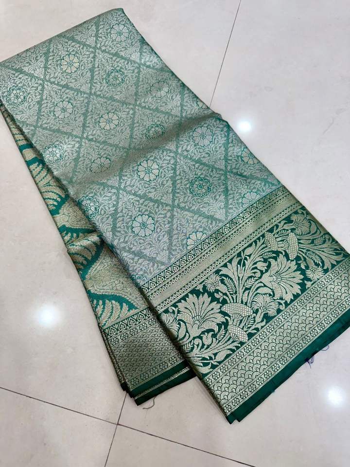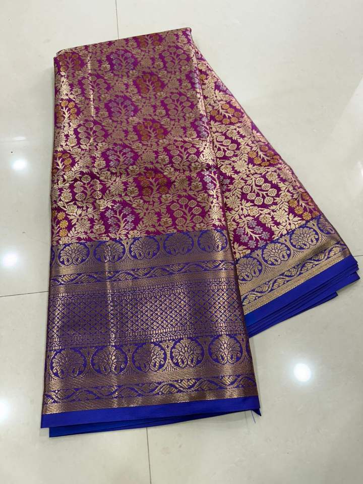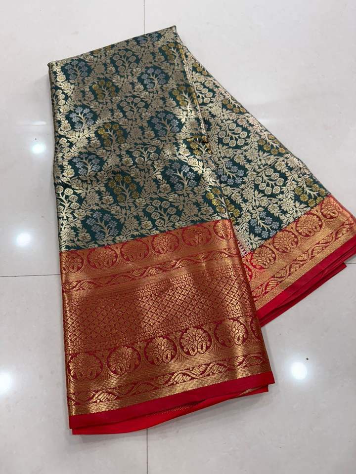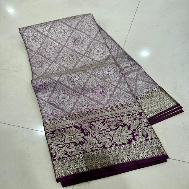 เสื้อผ้าชาติพันธุ์คุณภาพพรีเมียม ผ้าไหมอินเดียคันจิเวราห์เนื้อนุ่ม งานปักแจ็คการ์ด ซารีพร้อมเสื้อคลุม ปาลลูหรูหรา แฟชั่นสำหรับผู้หญิง ไม่มีลายพิมพ์
