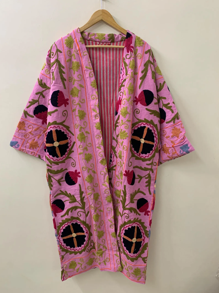 เสื้อคลุมชุดคลุมชายหาดผ้าคอตตอนสไตล์กิโมโนปักลายเสื้อโค้ทสไตล์ญี่ปุ่นสำหรับผู้หญิง