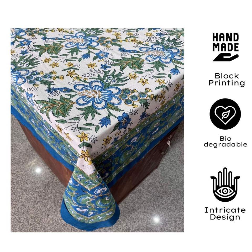ผ้าปูโต๊ะผ้าฝ้ายเนื้อนุ่มพิมพ์ลายบล็อก100% อินเดียหรูหราเป็นมิตรต่อสิ่งแวดล้อมของตกแต่งบ้านแบบปรับแต่งได้