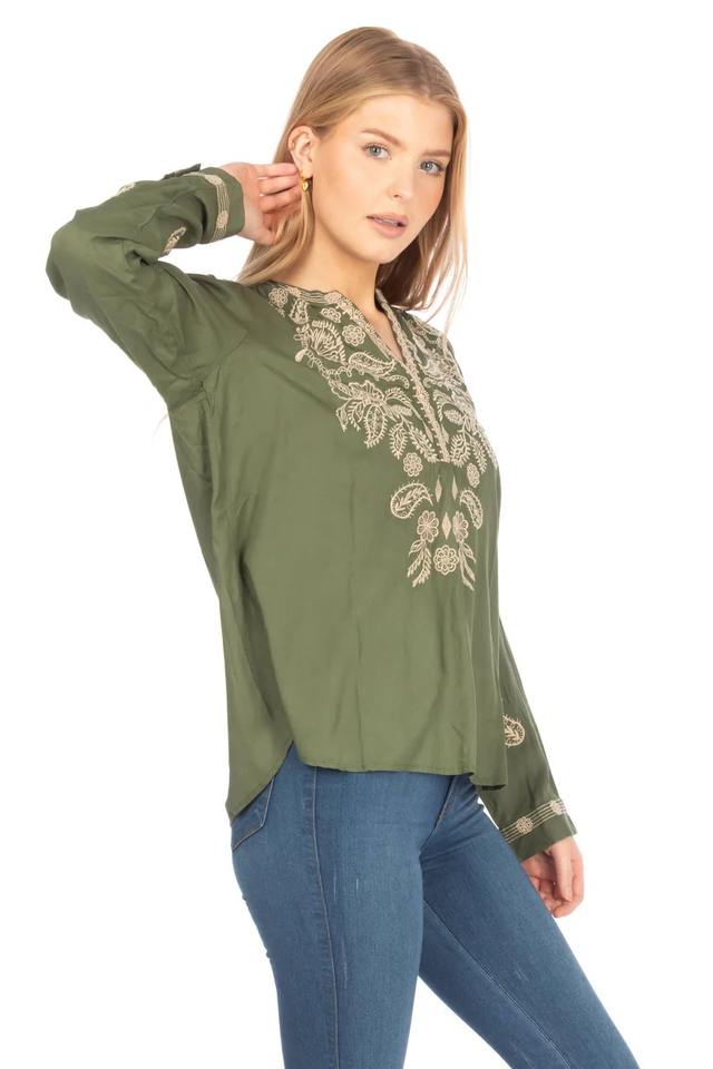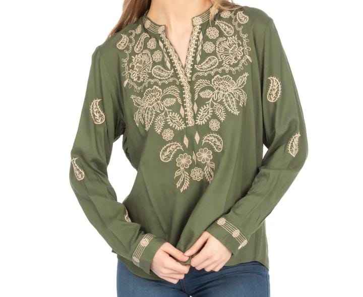 เสื้อเบลาส์สไตล์โบฮีเมียนปักลายดอกไม้ประจำชนชาติสำหรับสตรี