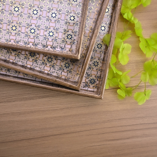 ชุดถาดเสิร์ฟลายดอกไม้สไตล์ชาติพันธุ์ 3 ชิ้น ของตกแต่งบ้านสไตล์โมเดิร์นและถาดเสิร์ฟ ขายส่งราคาดีที่สุด
