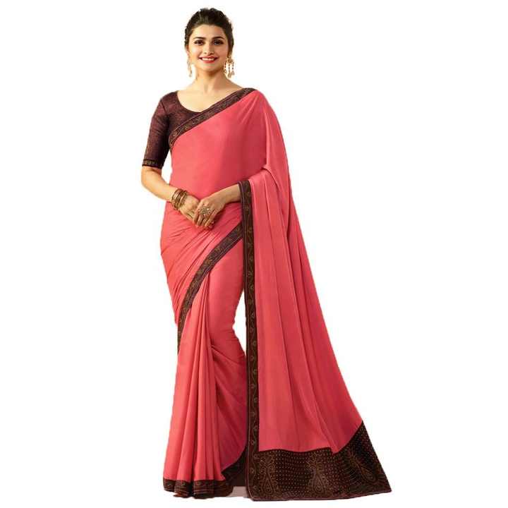 ผ้าส่าหรีผ้าฝ้ายลายลูกไม้ขอบแต่งสีสันสดใส พร้อมเสื้อคลุม สำหรับงานแต่งงานสำหรับผู้หญิง-ดีไซน์ทันสมัย ซักได้