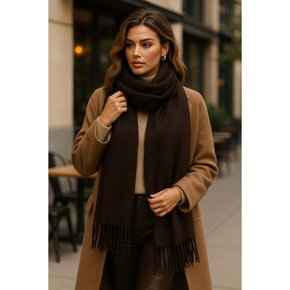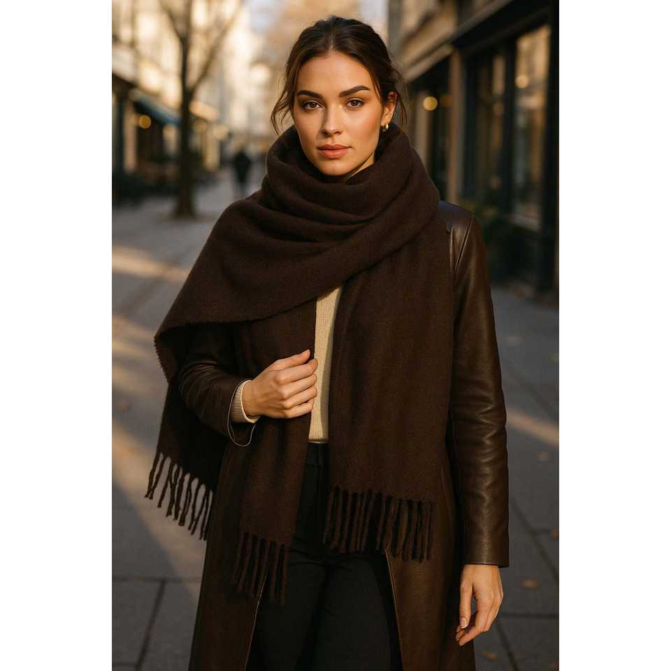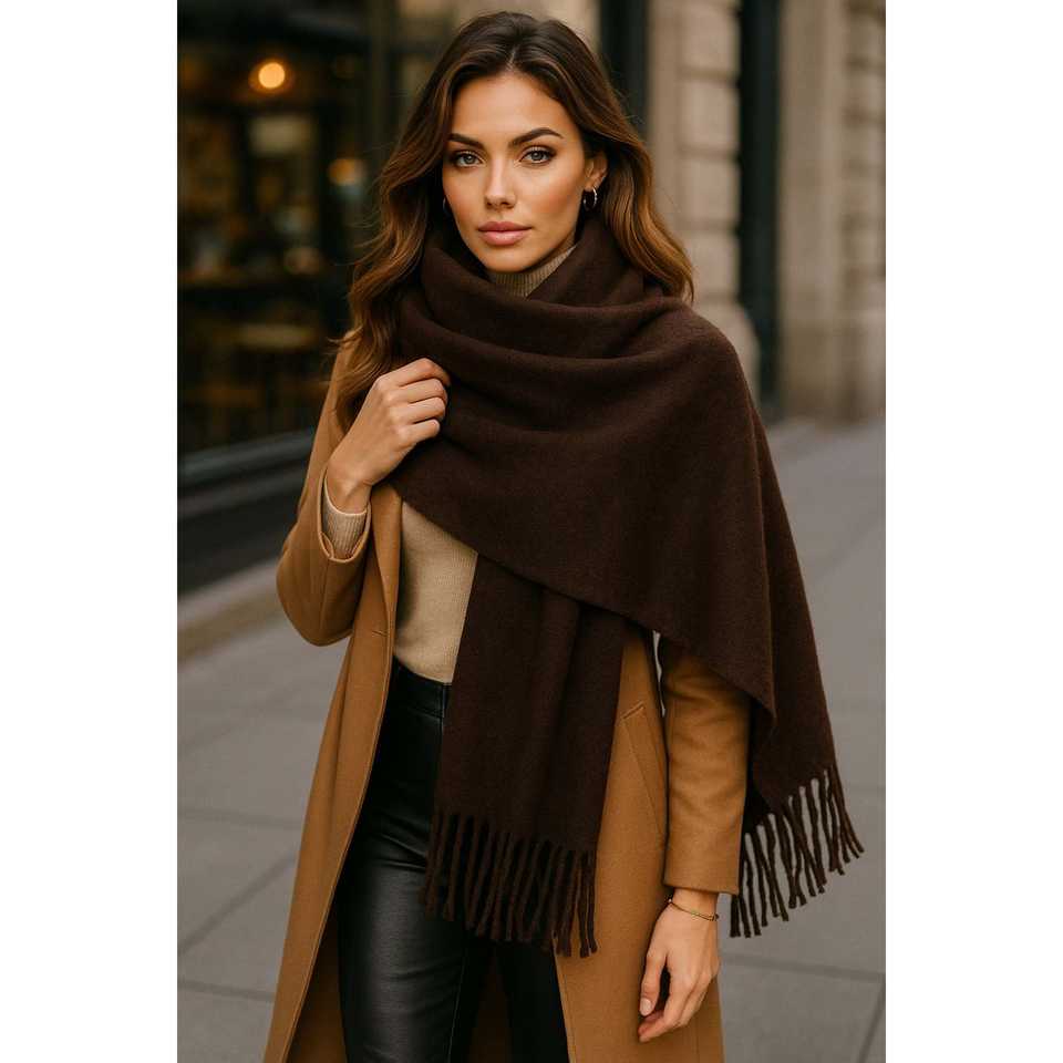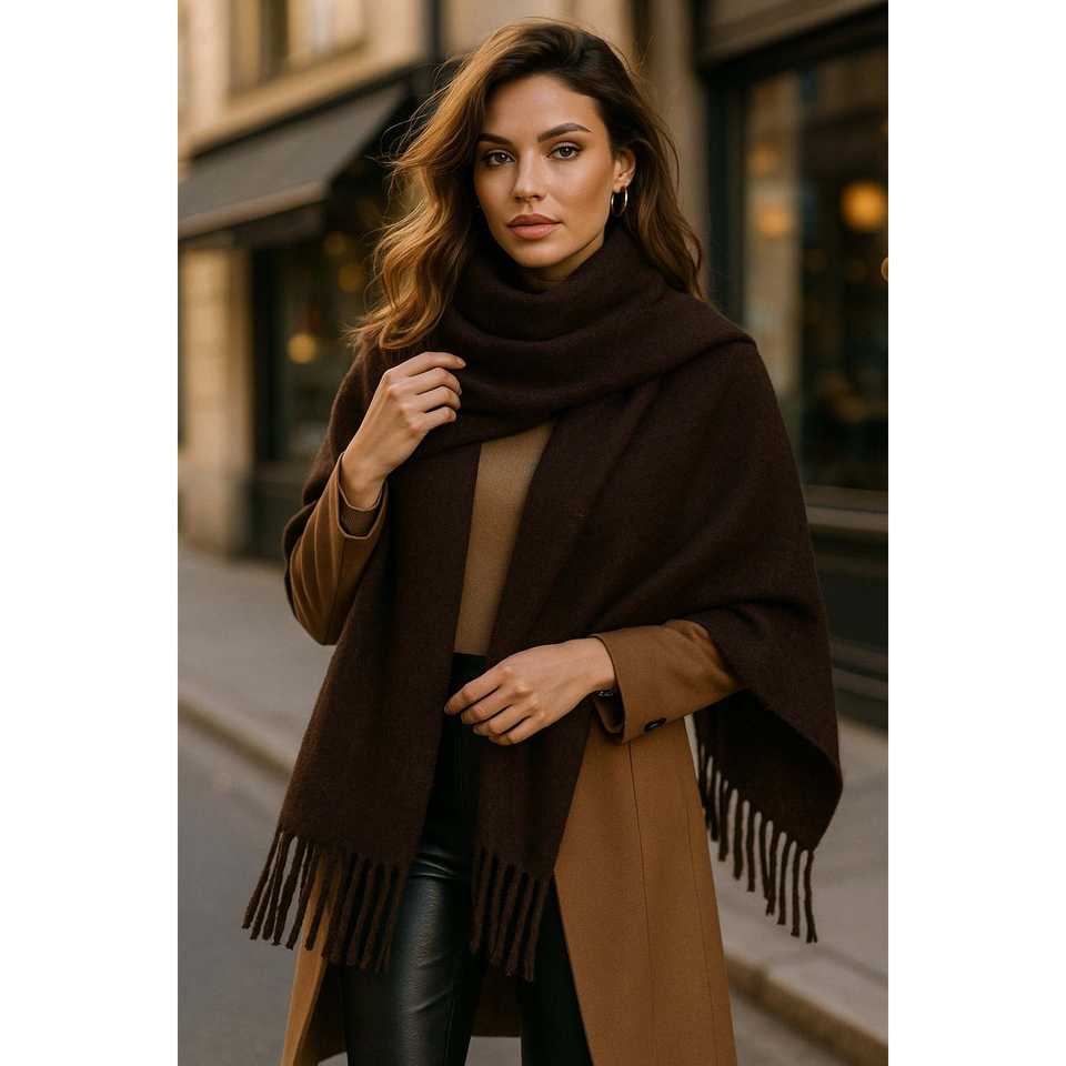 ผ้าคลุมไหล่พู่ห้อยสีเทาแบบชนเผ่า ทรงหลวม สำหรับอากาศหนาว-Sal1296