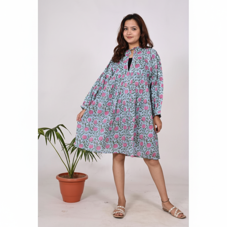 ประเภทสินค้า:ชุดเดรสผ้าฝ้ายพิมพ์ลายบล็อกสำหรับผู้หญิง