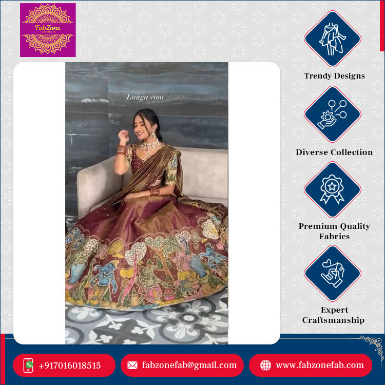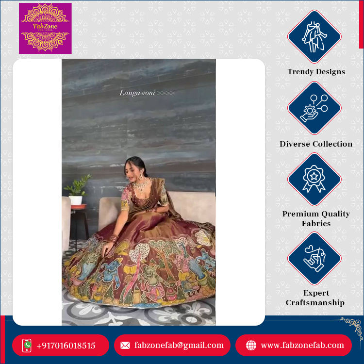 Lehenga choli kalamkari พิมพ์ลายพื้นเมืองอินเดียหรูหราผ้าจาริสำหรับงานแต่งงานงานปักผ้าโอกาสพิเศษ