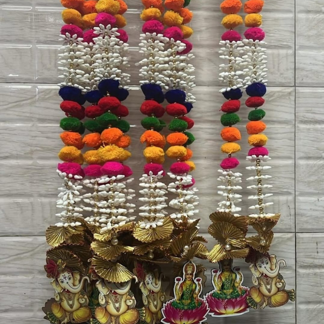 ประตูประดับตกแต่งสไตล์อินเดียพร้อมเครื่องรางพระกฤษณมณีและพระลักษมีสำหรับตกแต่งในเทศกาลดีวาลี