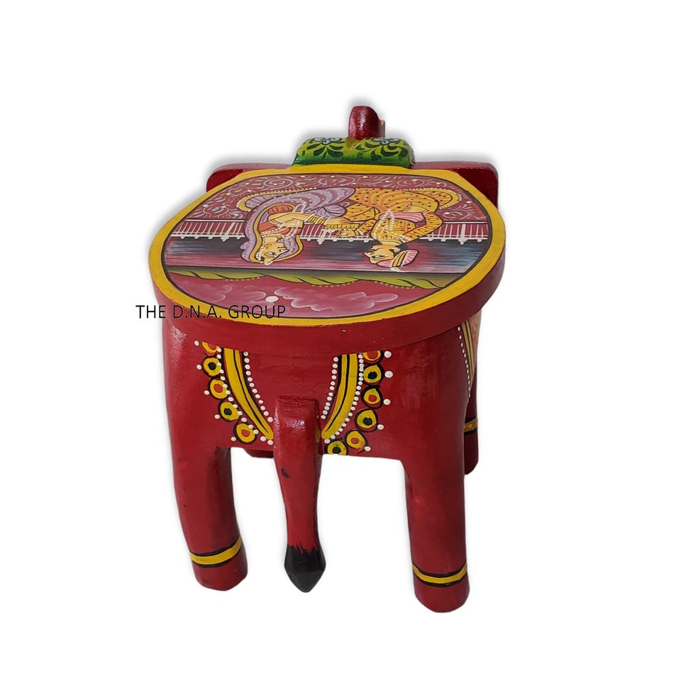 Ethnic Indian Style Wooden Elephant Low Height Stool Hand Painted with Gorgeous Color Combinations Footstool End Table
