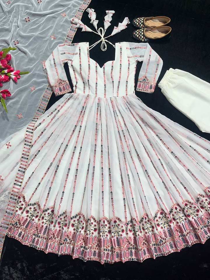 ชุดเดรสยาวสไตล์อินเดียปักลายผ้าจอร์เจียพร้อมชุดเดรสปักลายแฟนซี