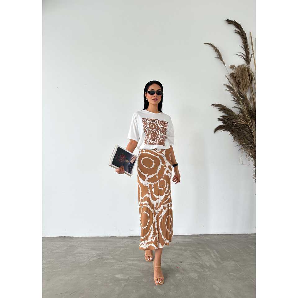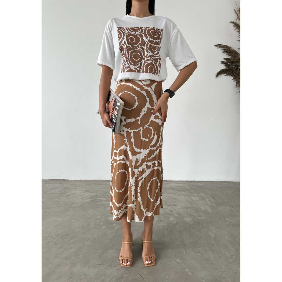 กระโปรงสตรีลายชาติพันธุ์ เอวยางยืด ผ้าพิมพ์ลาย สวมใส่สบาย สไตล์ความยาวปานกลาง