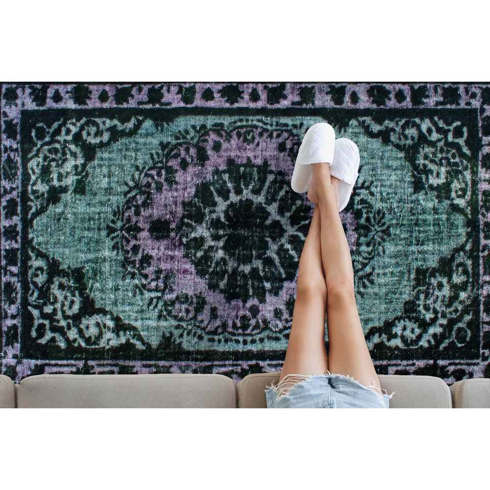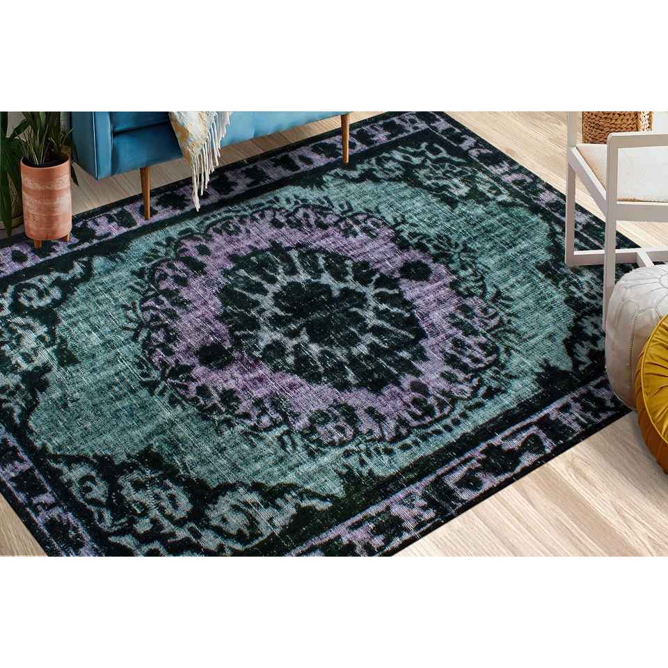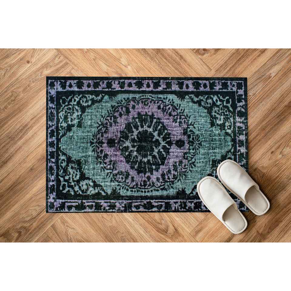 พรมพิมพ์ลายชนเผ่าเปอร์เซียตุรกีสีเขียวลายเหรียญประดับ ทำจากผ้าขนสัตว์แบบแพทช์เวิร์ค ฐานรองทำจากยางลาเท็กซ์เป็นมิตรกับสิ่งแวดล้อม พรมบางแบบไม่ทอ