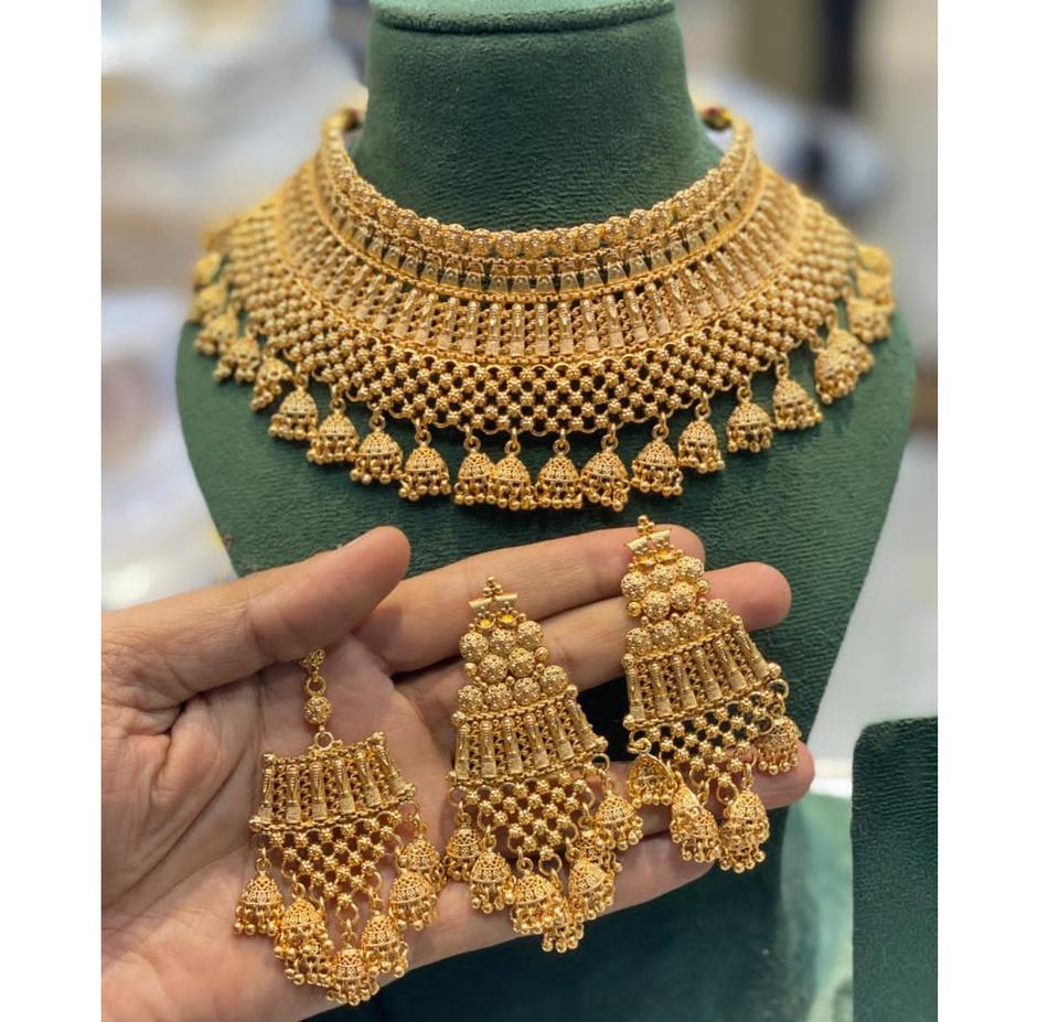 ชุดสร้อยคอทองเหลืองชุบทองคุณภาพพรีเมียมพร้อมต่างหูแบบติกก้า สำหรับงานแต่งงาน งานปาร์ตี้ งานเทศกาล คอลเลคชั่นสำหรับผู้หญิง
