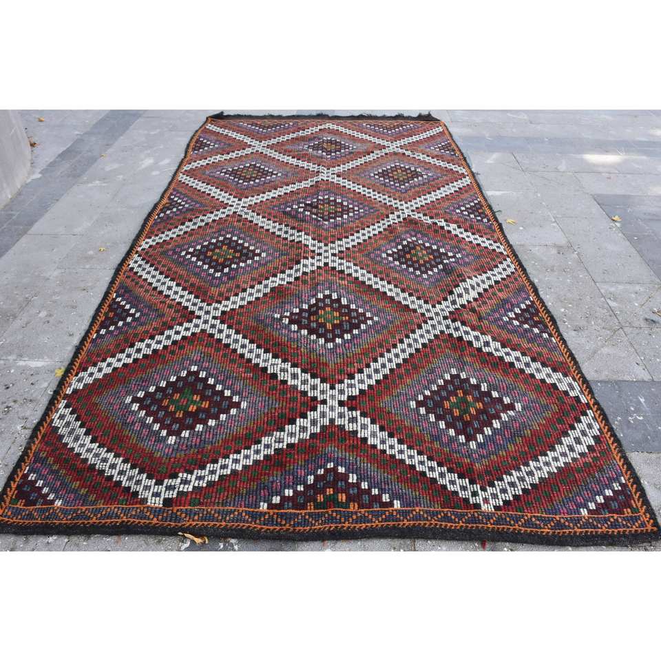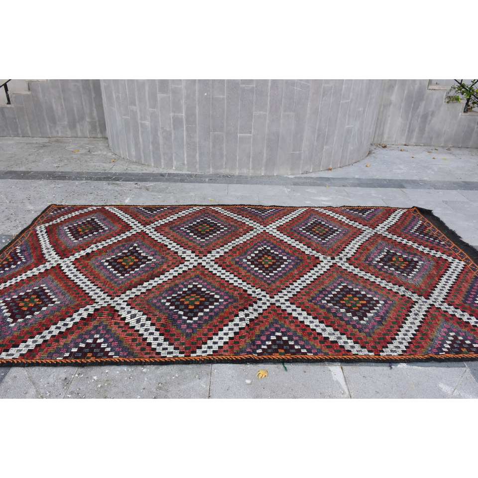 พรมขนแกะสีดำสไตล์ชนเผ่าสีแดงขนาด5.9x11ฟุตพรมทำด้วยมือสไตล์ตุรกีมีการเย็บปะติดปะต่อกันดีไซน์ลายทางสำหรับห้องนั่งเล่นโถงทางเดินลาเท็กซ์10มม.