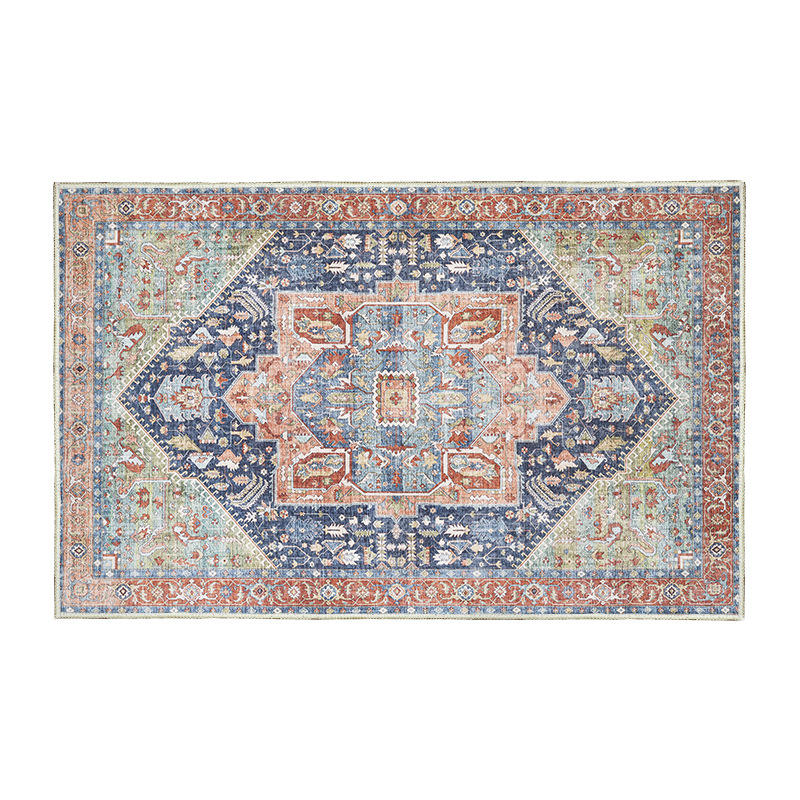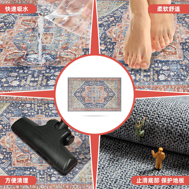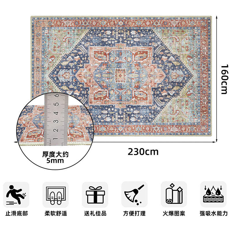 พรมปูพื้นลายเหรียญสไตล์ชาติพันธุ์ รูปทรงสี่เหลี่ยมผืนผ้า ทำจากเส้นใยโพลีเอสเตอร์ กันลื่น ใช้ในบ้าน ซักทำความสะอาดได้ ทำความสะอาดเฉพาะจุด ปูเต็มพื้นที่