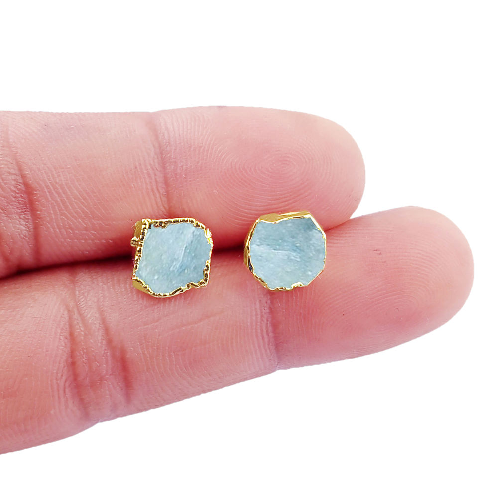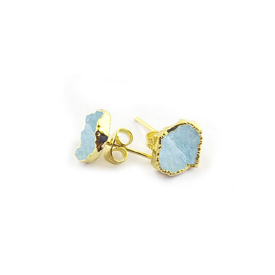 ต่างหูแบบติดหูทรงแฟนซีประดับพลอยอะความารีนดิบสไตล์ชาติพันธุ์ ชุบทองเหลือง ของขวัญสำหรับงานหมั้น สำหรับทุกเพศ รุ่น S-25