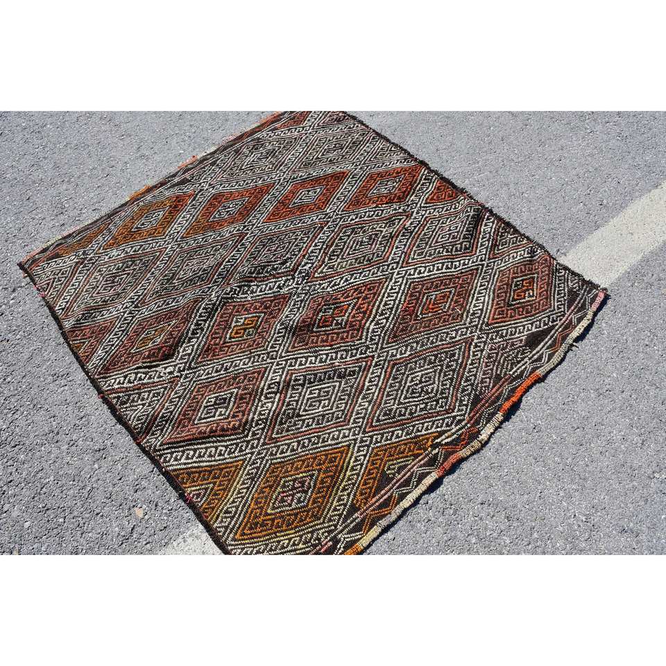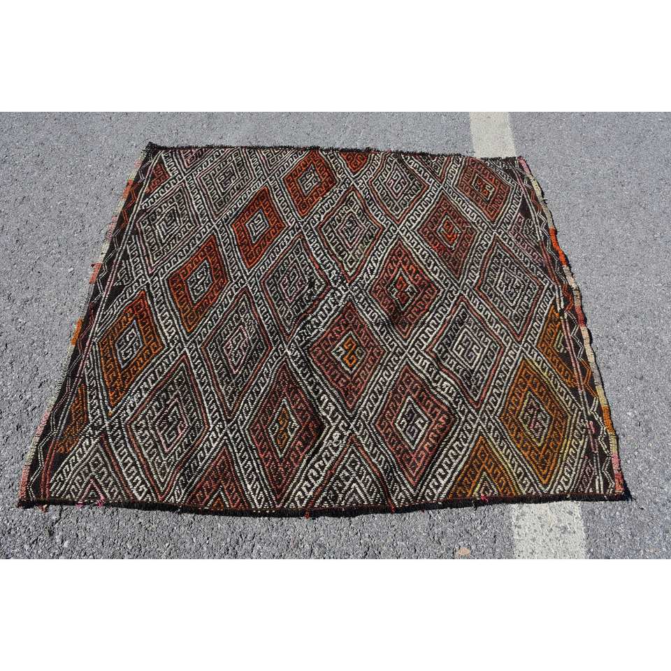 พรมขนเรขาคณิตสีแดงสีดำสไตล์ชนเผ่าพรมห้องนั่งเล่นใหม่ขนาด4.8x4ฟุตการออกแบบการเย็บปะติดปะต่อกันแผ่นยางรองสำหรับตกแต่งบ้าน