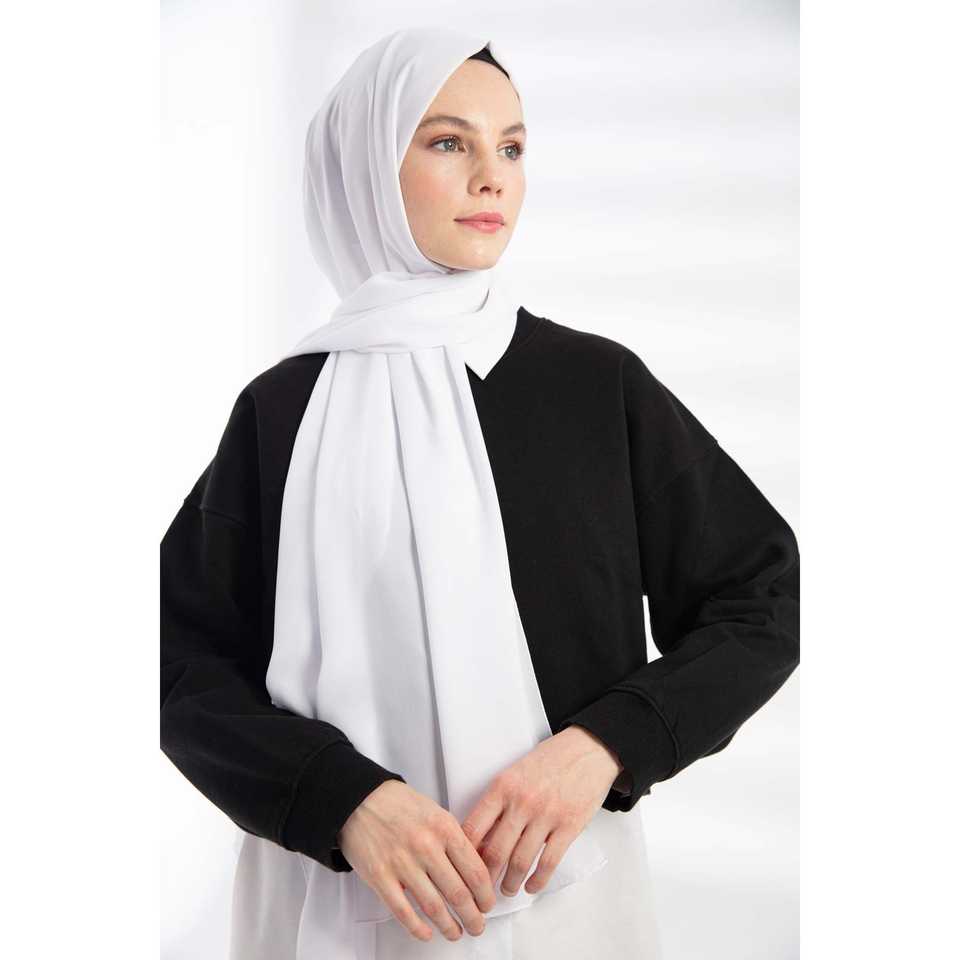 ผ้าคลุมไหล่สไตล์ชาติพันธุ์สีขาว ผ้าเครปเนื้อนุ่ม ทอจากผ้าฝ้าย พิมพ์ลายดอกไม้และลายเรียบ ความยาวแบบยาวพิเศษ บริการสกรีนโลโก้ตามสั่ง