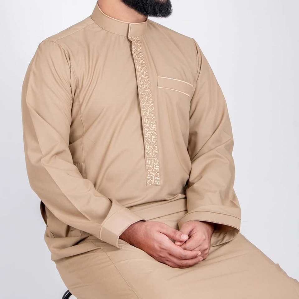 ชุดคลุมแบบดั้งเดิมของชาวมุสลิมสำหรับผู้ชาย น้ำหนักเบา ไม่ยับ ระบายอากาศได้ดี ความยาวคลุมถึงพื้น ชุดอิสลาม