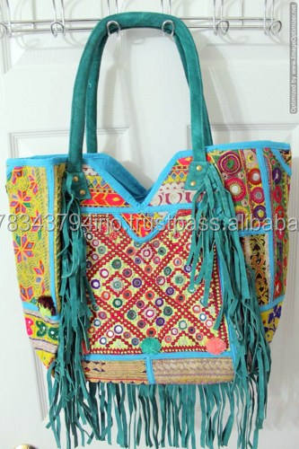 กระเป๋าสะพายไหล่ผ้าฝ้ายทำมือสไตล์ชนเผ่าบันจารา ยิปซี ลายจุดสีสันสดใส งานปักมือ ปรับแต่งได้