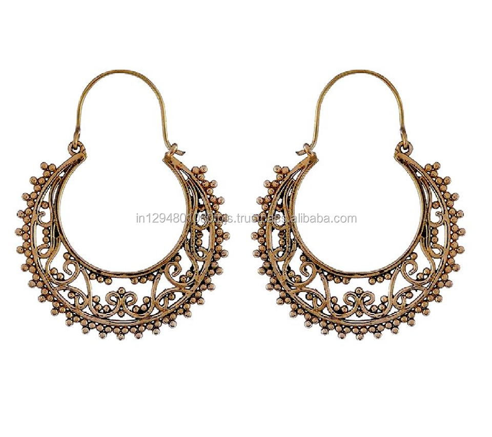 Ethnic Tribal Jewelry Boho Brass Earring Brass Hoop Earrings