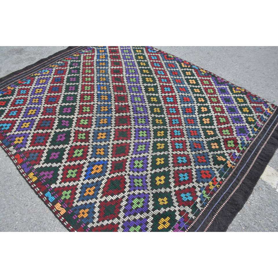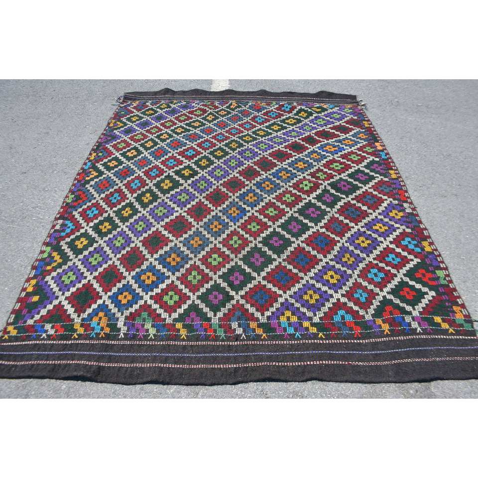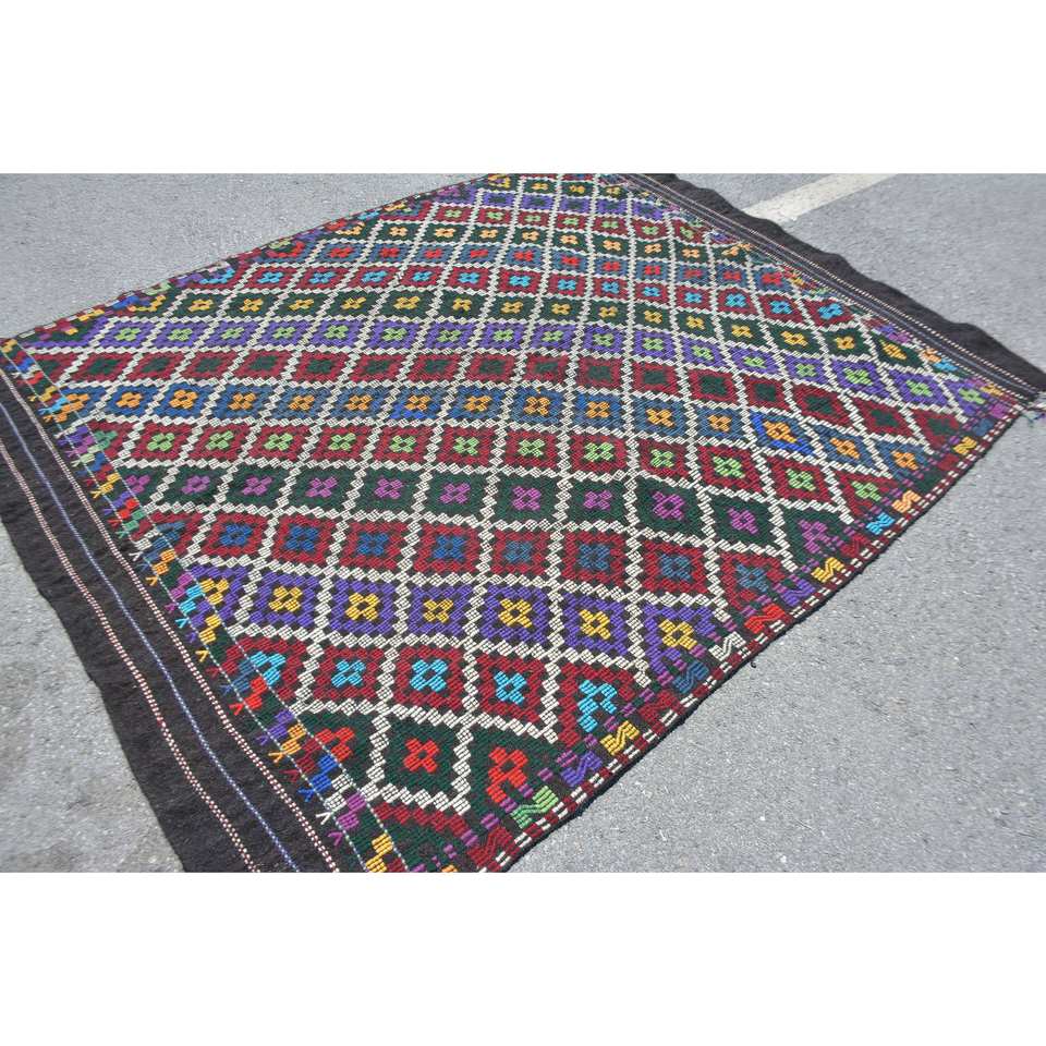 พรมสไตล์ชนเผ่าโบราณสไตล์ตุรกีขนาด6.3x7.9ฟุตขนสัตว์ดีไซน์แบบเย็บปะสีเบจคลาสสิกมียางเหนียวด้านหลังสำหรับใช้ในห้องนั่งเล่น