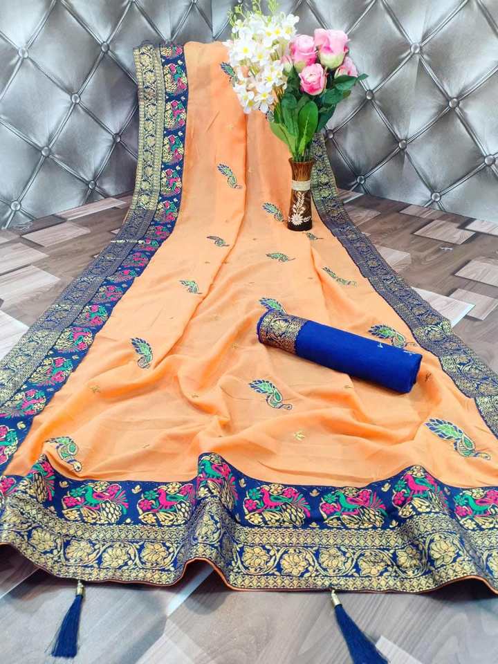 ผ้าฝ้าย, ผ้าไหม, ผ้าลินิน, โพลีเอสเตอร์, ไหมสังเคราะห์, สารละลาย้เหนียว, ผ้าขนสัตว์ชนิดหนึ่ง, ไนลอน, Pallu Chinon and Skirt Rangoli, Georgette, Chiffon, Chinon, silk base fabricsวัสดุ