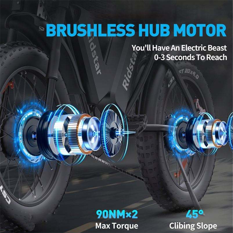 Eu Warehouse Ridstar Q20 Pro 20'' Ebike Dual Motor 52V 40AH Fat Tire Electric Dirt Bike City Mountain Electric Bicycle for Adult