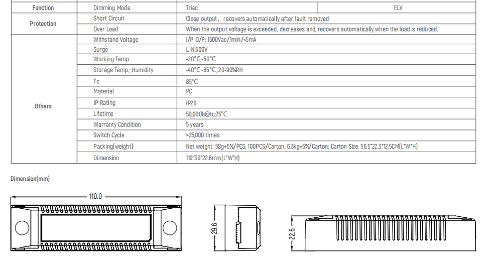 110*30*22.6 มม.(ยาว * กว้าง * สูง)