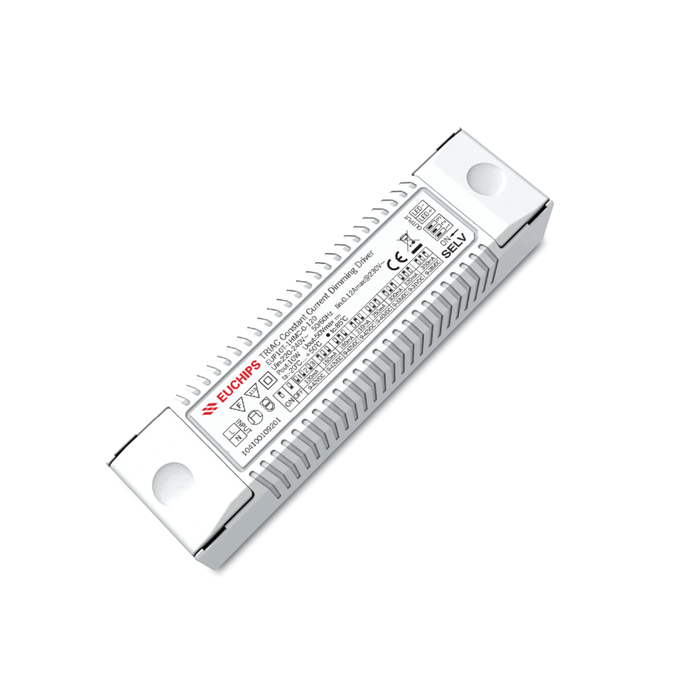 ไดรเวอร์ LED ยี่ห้อ Euchips รุ่น EUP10T-1HMC-0-120 รับประกัน 5 ปี ตัวเรือนพลาสติก กำลังไฟ 10 วัตต์ 120~350mA*1CH แบบ Phase-Cut Cc สำหรับไฟ LED