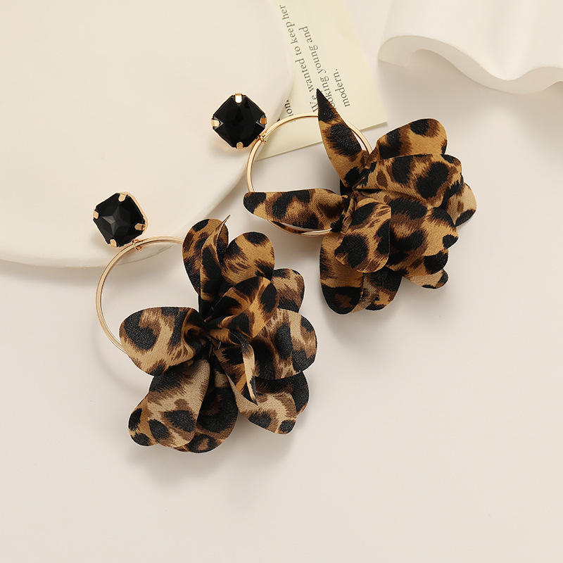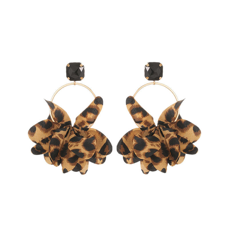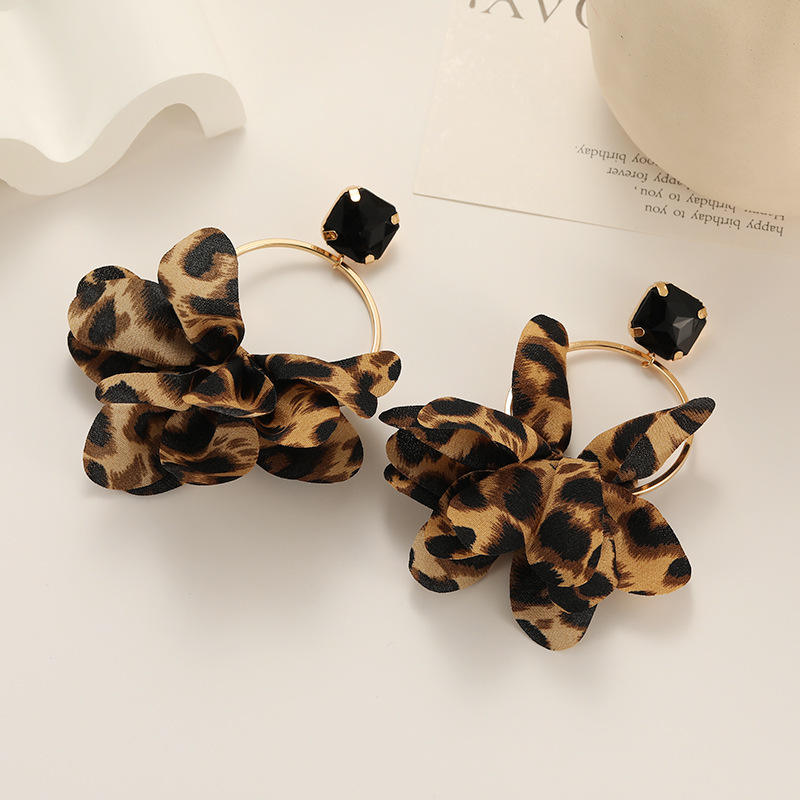 แฟชั่นข้ามพรมแดนแบบยูโรอเมริกันต่างหูผ้าพิมพ์ลายเสือดาวสีสันสดใสของขวัญอัญมณีจำลองรูปทรงเรขาคณิต